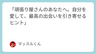 「自分を磨けば、きっと内面を見てくれる人と出会える」。その願いを叶えるために必要なのは、特別なことではなく、自分を大切に扱う日常の積み重ねです。マッスルくんと一緒に、心に栄養をあげる練習を始めましょう。
