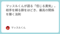 マッスルくん自分の中にしっかりとした「線引き」を持つことだ。「おいしいものは自分の力で食べなさい」と、時には毅然と伝える強さ。これがお互いの成長には欠かせない。甘やかしすぎることで、結果的に相手の「依存する心」を引き出してしまったのかもしれないな。