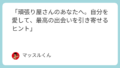 マッスルくんその通り。今回学んだ「自分を大切にする線引き」は、これからの人生で大きな強みになる。新しい自分になって、これからの出会いを楽しんでほしい。俺はいつでもここで応援しているぞ。