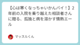 マッスルくん最後にこれだけは覚えておいてほしい。今日「自分を変えたい」と思ったこと自体、心が新しく生まれ変わろうとしている証拠だ。さらに強く、たくましくなった相談者さんに会えるのを楽しみにしている。